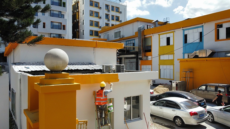 深圳市花儿朵朵央厨食品供应链有限公司约2000平方厂房外墙真石漆翻新项目于2022年5月宝俊涂装施工队伍正式进场开始施工,以下是施工图片: